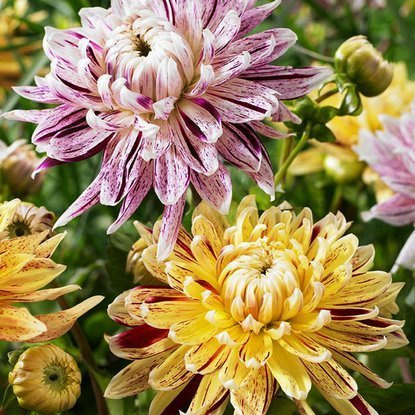 Dahlia, auch bekannt als Georgia, ist eine der am häufigsten angebauten Frühlingszwiebeln. Der Sortenreichtum, die verschiedenen Farben und ein äußerst attraktives Aussehen lassen die Dahlien in unseren Gärten großartig aussehen und sehen genauso schön aus, wenn sie geschnitten werden. Je nach Sorte kann die Dahlie bis zu 1,50 m hoch werden. Wir haben solche Sorten in einer sorgfältig ausgewählten Sammlung von Blumenzwiebeln für Sie vorbereitet. In unserem Angebot finden Sie Zier-, Kaktus- und Mognon-Dahlien sowie sehr beliebte Pompom-Dahlien. Dahlienzwiebeln sollten an halbschattigen und windgeschützten Stellen gepflanzt werden. Die optimale Pflanzzeit ist Ende April und Anfang Mai. Richtig gepflegt blühen sie zwischen Juli und Oktober und bilden schöne Kompositionen in Blumenbeeten. Graben Sie vor dem Winter die Dahlien mit den ersten Frösten aus und stellen Sie sie an einen Ort mit einer Temperatur von 4-5 Grad Celsius.